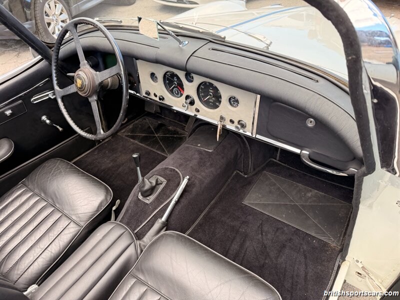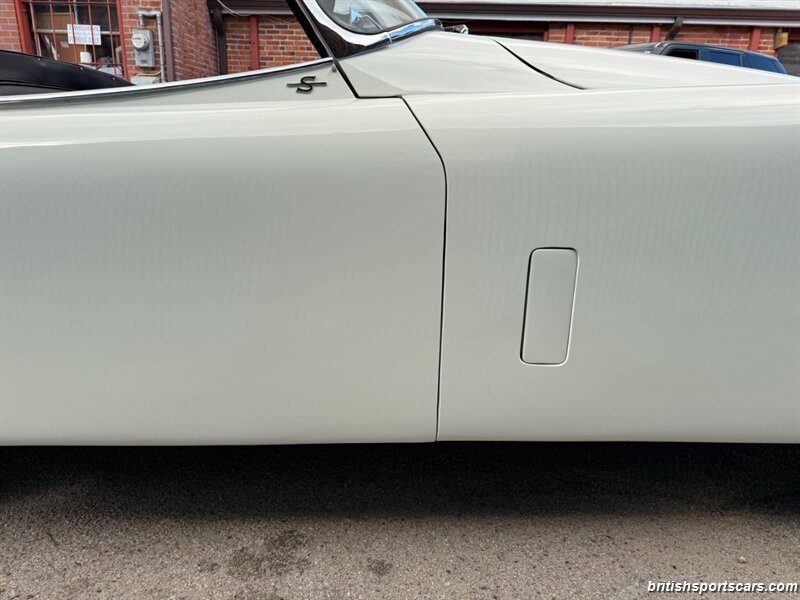 This example is the highly desirable 3.4-liter matching-numbers “S” model, featuring the factory high-compression, triple-carburetor engine, offering significantly higher performance than the standard XK150. The XK150S represents the pinnacle of the XK line, combining improved braking, handling, and power in a refined open-roadster package.
