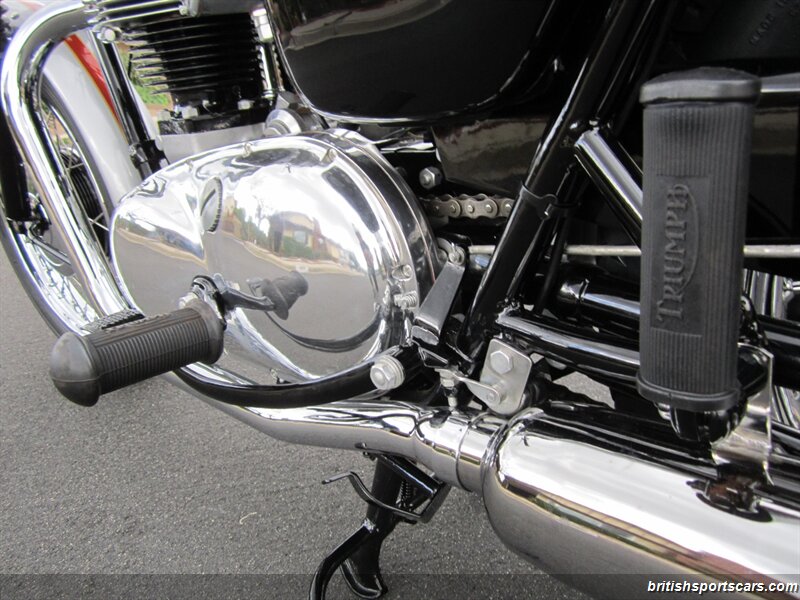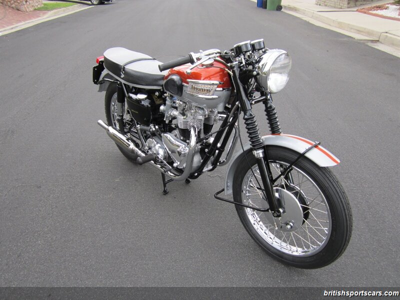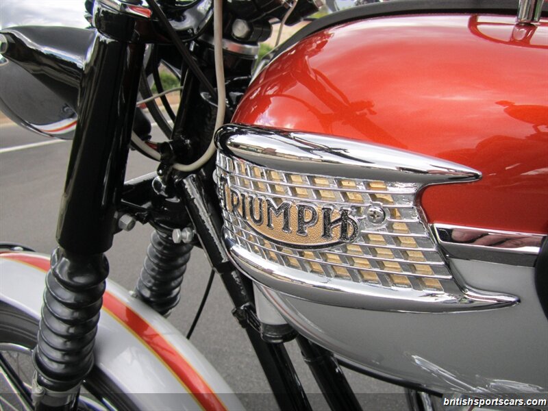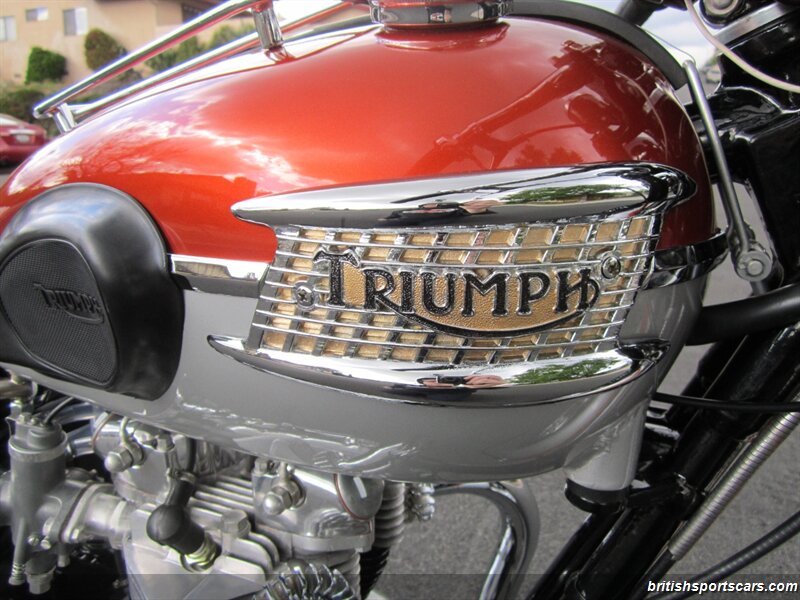 Upon chemical stripping, the bodywork was found to be in excellent undamaged condition, and sent to renowned Triumph painter, Geoff Giammarco, to reapply the spectacular factory original color scheme of Flame over Silver Sheen with gold pin striping. The Duplex frame was also stripped, painted, and treated to new bushings and swing-arm spindle, while the engine was entrusted to the noted specialist, Franz and Grubb in North Hollywood, with assembly completed by Jonnie Green.