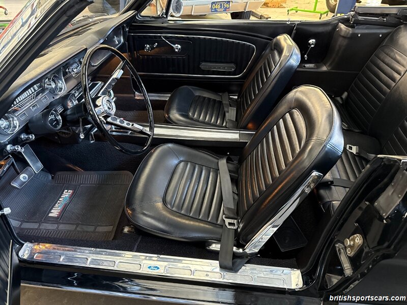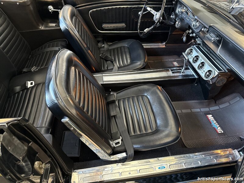 This Mustang has been fully restored from the ground up and is in outstanding condition throughout. The paint and bodywork are superb—finished in a deep, mirror-gloss black with beautiful panel fit and gaps. The underside is equally impressive, showing no rust, patch panels, or repairs. The boxed frame sections are solid and original, a rarity among early convertibles.